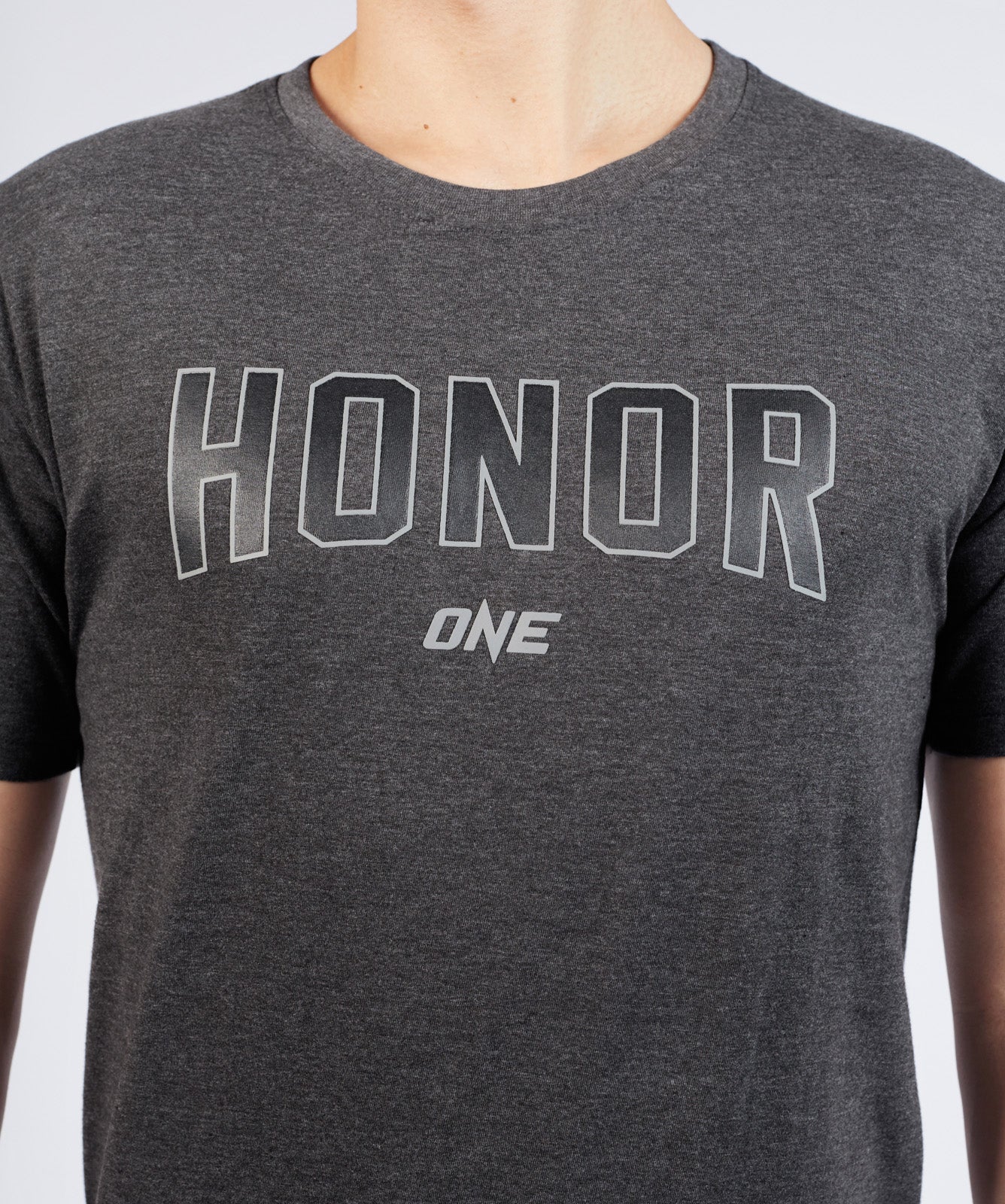 The Honor Tee features one of the hallmark values of martial arts and of ONE Championship. Against a classic dark heather gray t-shirt, the word 'Honor' is displayed in specially designed typography and is outlined in high density ink for a crisp 3D feel. The Honor Tee is finished with our multilingual "The Home of Martial Arts" woven necktape and has a screen printed inner neck label for added comfort.