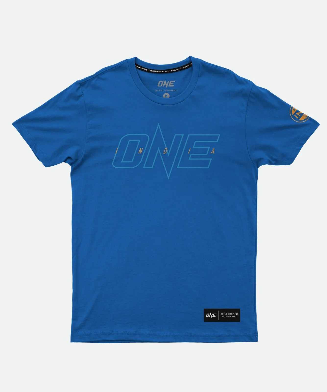 Part of the Country collection, the ONE India Logo Tee is created with our Indian fans and athletes in mind. The ONE India Logo Tee features a screen printed ONE logo with the country name 'India' applied in high density ink to create a crisp 3D effect. A specially designed emblem inspired by the Indian flag is also screen printed on the left sleeve. The t-shirt is finished with our multilingual "The Home of Martial Arts" woven necktape and has a screen printed inner neck label for comfort.